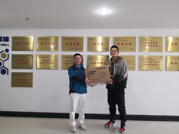 随着新冠肺炎疫情的发展,软件学院为进一步做好学生返校和开学后常态化防疫工作做了大量工作,包坤航同学在疫情期间主动到街道做志愿者,进行体温检测和入户排查工作。临近开学,他多方筹措购买了一批一次性医用口罩,当谈及捐赠物质的原因时,他说:学校使我们所有学生的大家庭,作为其中一份子,理应为疫情防控工作贡献自己的力量。