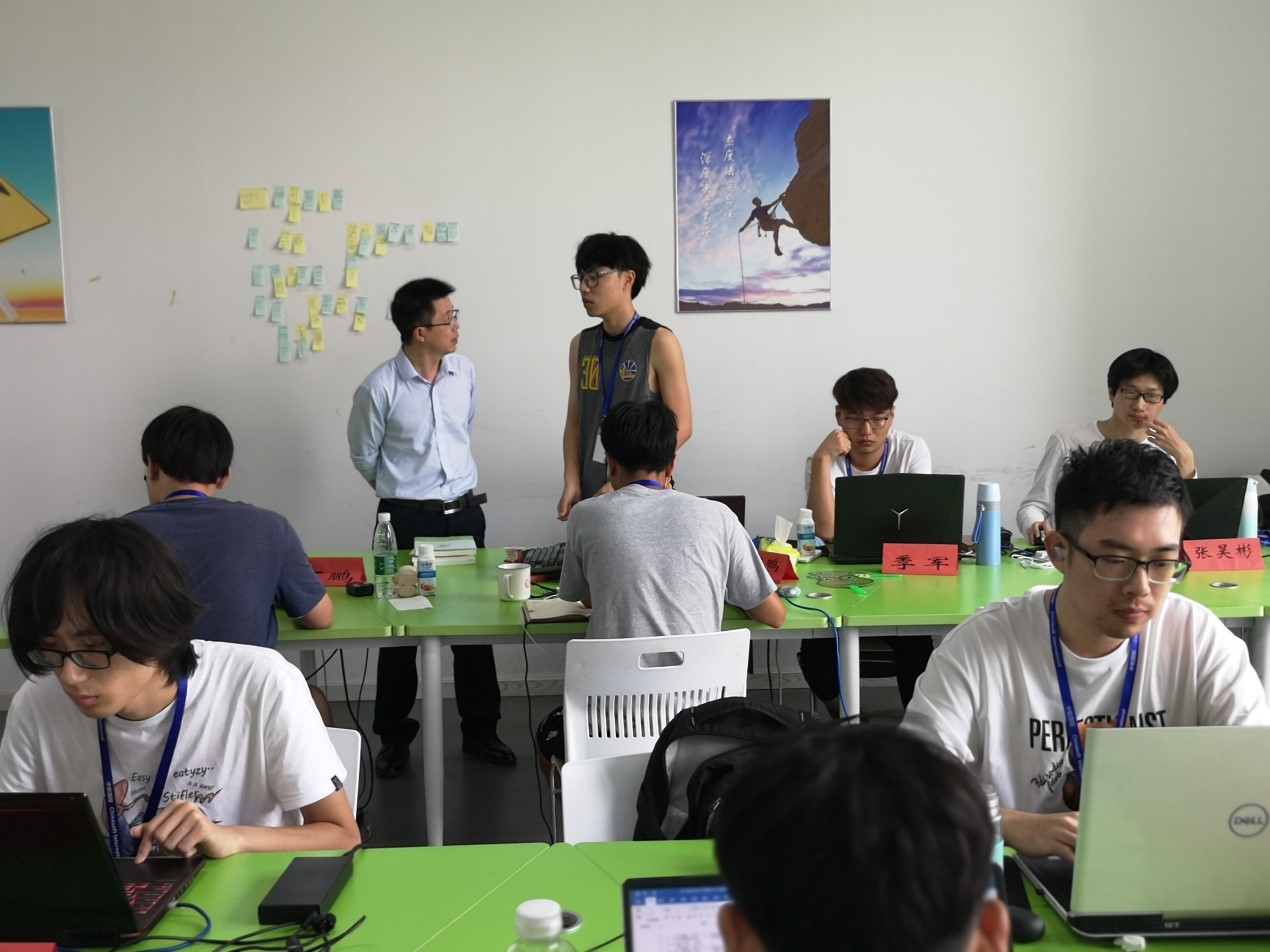 徐书记、胡院长一行首先到实习基地看望正在基地开展实习的18软件工程(嵌入式培养)专业的学生,深入了解学生自5月24日以来在实习基地这段时间的生活、学习情况,并对学生反应的各种问题给予答复并及时解决。虽然天气炎热,但宿舍和实习教室均有空调,学生对在实习基地的生活和学习环境等比较满意,通过在基地8周的项目实际训练,学生除了将在学校所学的各种专业知识进行综合运用外,还通过参与项目实战提高了软件设计开发技能,每位同学都感觉收获匪浅,目前实习项目进入分组答辩环节。然后,前往学生食堂查看学生饮食供应情况,中软国际在园区开办了一个小型食堂,解决实习学生的饮食问题,菜品较丰富,学生可以按需自主选择。在中午,前往学生宿舍调研学生的住宿条件,宿舍是4-6人间,面积较大,有空调和独立的卫生间,能满足学生的需求。最后,与中软国际的任经理、卞经理等交流本次实习情况、并对后续推进18级软件工程(嵌入式培养)的学生毕业实习和就业推荐工作等进行了深入交流。