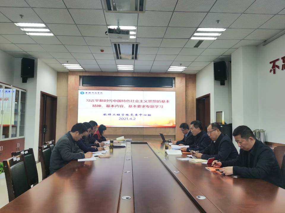 4月2日上午,BB贝博艾弗森原官方网站在科技楼325组织开展了中心组学习,专题学习了习近平新时代中国特色社会主义思想的基本精神、基本内容、基本要求,会议由学院党委书记徐志国主持,全体中心组成员参与了学习。