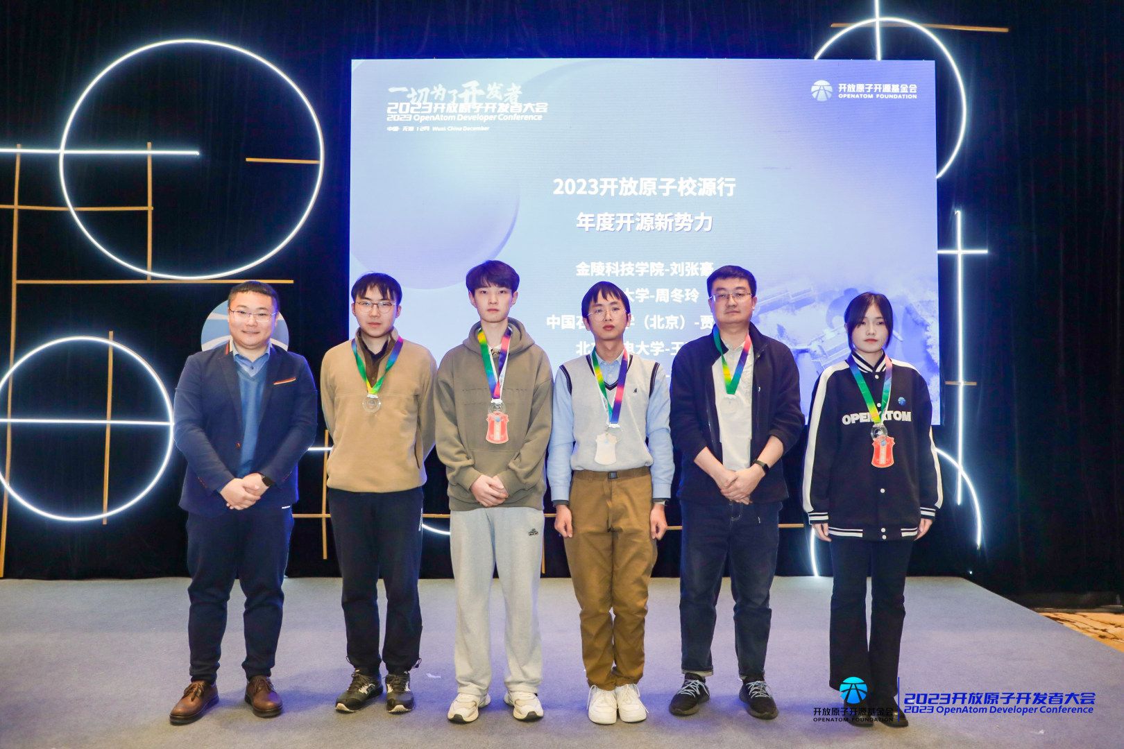 大会上举行了开放原子云社区成立仪式,为开放原子开源大赛获奖选手颁奖,我社的刘张豪同学荣获“2023开放原子校源行年度开源新势力”的称号,贝博官网的开放原子开源社团荣获“2023开放原子校源行年度开源社团”的称号。社团成员参与了以“新时代,新开发者”为主题的圆桌对话。