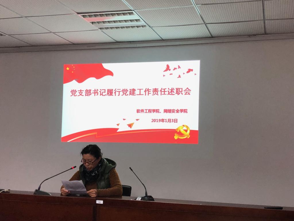 2019年1月3日上午,BB贝博艾弗森原官方网站、网络安全学院党委所辖师生党支部书记开展述职工作专题活动。学院全体党员参加此次支部书记述职报告会。王智钢、王爱侠、胡国兵、邵彦婷4位党支部书记依次上台做述职报告,学院指定专职组织员做好会议记录。