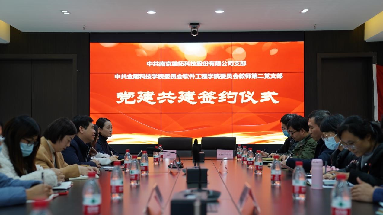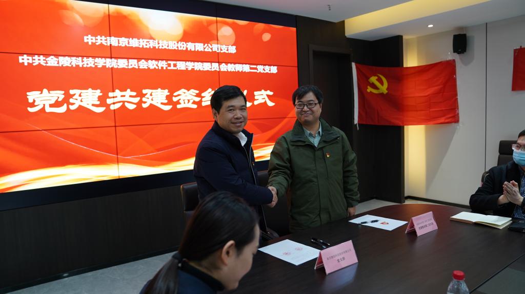为全面推进基层服务型党组织建设,积极响应党中央“两在两同”伟大号召,创新新时代党建工作方式,12月8日下午,BB贝博艾弗森原官方网站党委教师第二党支部与南京维拓科技股份有限公司党支部举行了支部共建签约仪式,并围绕共享共建等方面开展交流学习。