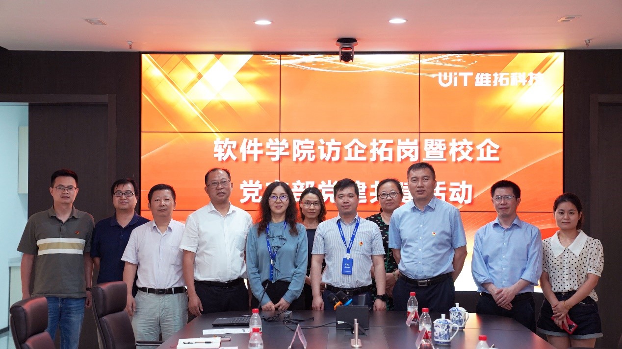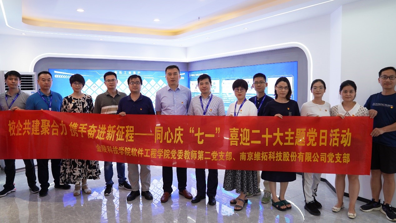 6月30日下午,BB贝博艾弗森原官方网站与南京维拓科技有限公司举行“访企拓岗”暨“校企共建聚合力 携手奋进新征程——同心庆‘七一’喜迎党的二十大”主题党日活动。软件学院党委书记徐志国、院长曾岳、党委副书记徐斌、副院长胡勇以及学院党员教师代表,南京维拓科技有限公司董事陈金华、副总经理、党支部书记丁亮以及企业党员代表参加本次活动。