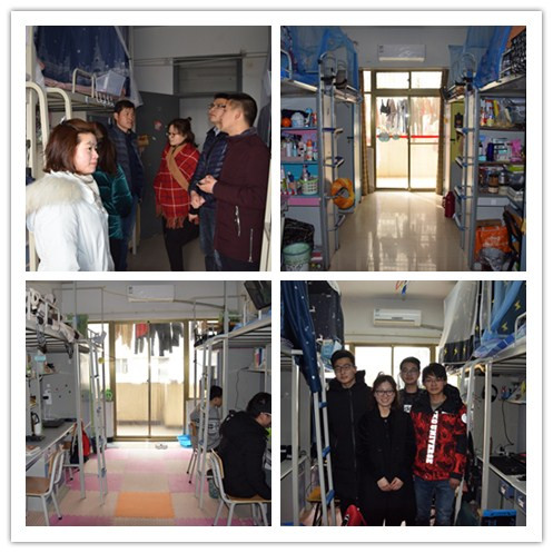 检查小组在宿舍管理员的带领下先后检查了男、女生宿舍楼。所经不少规范、整洁的宿舍,展现了金科学子优秀的精神面貌与生活作风。而对于部分不达标的宿舍,老师们更是与其所属的学生进行沟通,教导他们要养成良好的生活习惯、努力营造舒适的学习氛围。最后张理航书记与宿舍工作人员进行了亲切交流,询问他们的工作难题与学生们平日的生活状况,力图今后共同将学生宿舍建设的更加文明、规范。