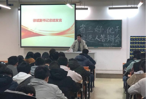 评审会上,省级三好学生和优秀学生干部3名候选人依次上台进行汇报,汇报过程中,3位候选人向评委展示了大学生活中取得的成就、自身的学习经历、荣誉展示以及未来规划等。汇报完毕,徐斌副书记对参与答辩的同学表示了鼓励与肯定,同时指出本次答辩会对学风建设工作有重要的推动作用,此外,徐斌书记还表达了对参会同学的期望,鼓励同学们以候选人为榜样,脚踏实地、认真学习,积极投身于实践活动和公益事业,认真做好自己的未来职业规划,争当模范。