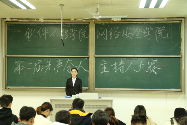 11月21日,由BB贝博艾弗森原官方网站,网络安全学院文艺部主办的“先声夺人”主持大赛在1432教室举行,学工办副主任李勇、辅导员马晓辉、杜文娟和近百名学生一起观看比赛。