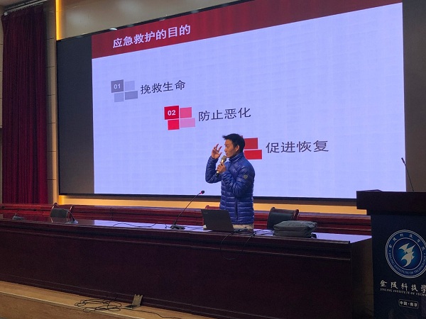 为了增强2020级新生安全突发事故自救知识教育,提高紧急情况自救能力,12月3日,BB贝博艾弗森原官方网站在科技楼2号楼报告厅举办心肺复苏急救知识讲座,本次讲座由南京红十字会救护师资库成员、体育部孙浩老师主讲。讲座由孙垒老师主持,新生辅导员张理航、马晓辉及各年级学生干部代表参加。