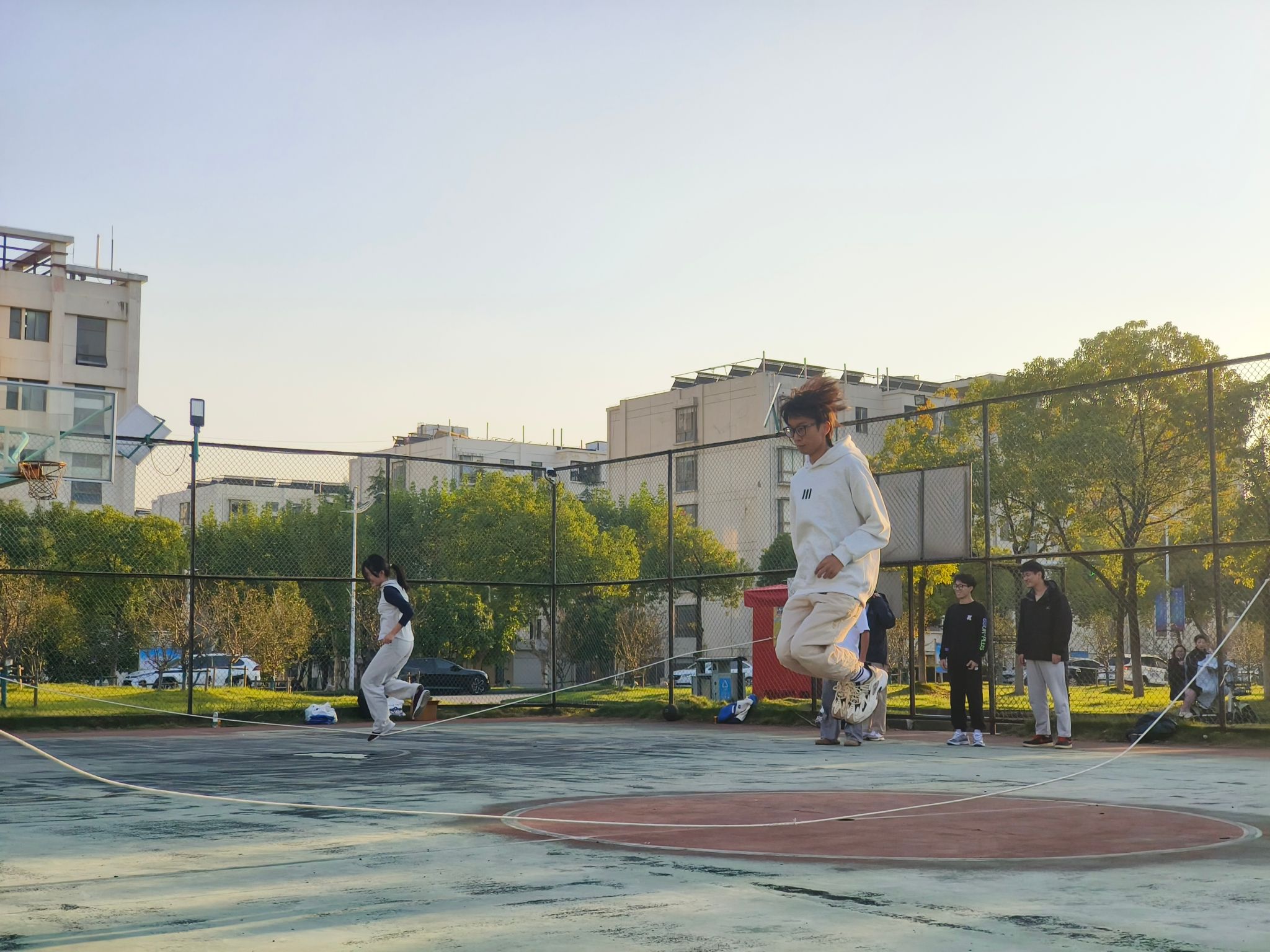 本次趣味运动会共设置了四个游戏项目,包括袋鼠跳接力、趣味投篮、多人跳绳接力和两人三足接力。每个项目都充满了趣味性与挑战性,旨在考验同学们的身体协调性与团队协作能力。比赛过程中,同学们热情高涨,积极参与,展现了良好的竞技状态与团队协作精神。
