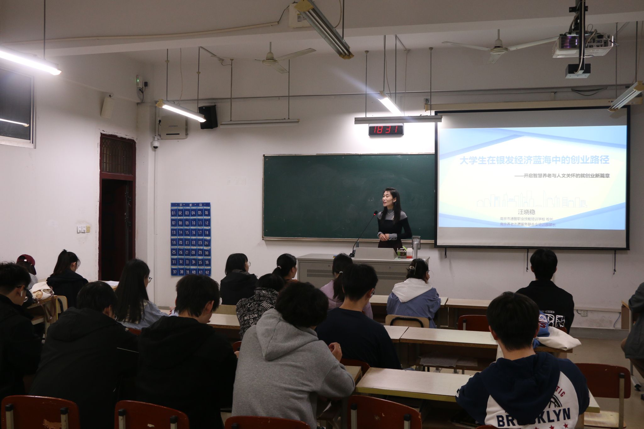 2024年11月13日晚18:30至19:30,BB贝博艾弗森原官方网站在1号教学楼1503室成功举办了一场大学生创业讲座。本次讲座旨在探讨大学生在银发经济蓝海中的创业路径,并开启智慧养老与人文关怀的创业新篇章。本次讲座的主讲嘉宾为南京市通智职业技能培训学校的校长、南京养老志愿服务联合会培训部部长汪晓稳。