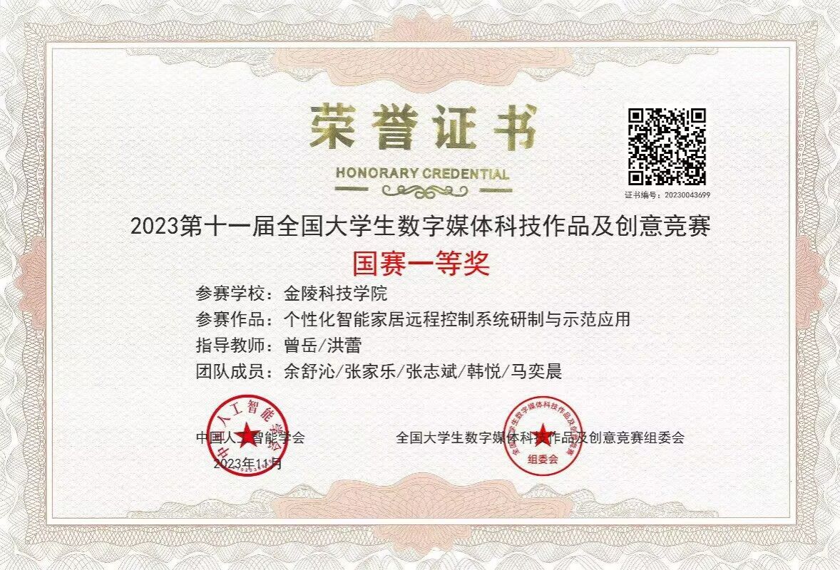 BB贝博艾弗森原官方网站BB贝博艾弗森原官方网站《个性化智能家居远程控制系统研制与示范应用》和《元素瓶软件代码智能审查系统》两个作品,在7万件作品中脱颖而出,荣获国赛一等奖。本次参赛团队由曾岳教授、洪蕾教授和董如婵副教授以及BB贝博艾弗森原官方网站和计算机工程学院余舒沁、夏金伟、施瑞昭、苏宁、张志斌等同学组成,经过近一年的打磨,凭借路演环节中的出色发挥,体现了专业优势与独特创意,成功在智能产品设计赛道中受到评审专家的肯定。本次比赛提升了专业教师的教学创新水平,提高了学生的创新实践能力和团队合作意识,推动了学院产教融合高质量成果建设。(撰写人:洪蕾)
