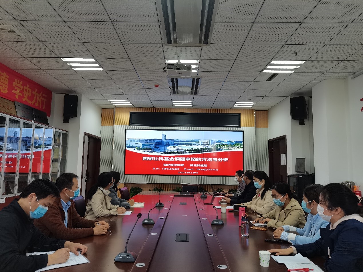 孙教授以“国家社科基金课题申报的问题与方法”为题,从基金的指导思想,具备条件、限制条件,课题范围、研究经费与研究时间,如何选题、课题论证,如何填写、填写举例等几个方面进行了深入细致的讲解和介绍。孙教授先后成功申报国家自然科学基金项目1项,国家社科基金项目2项,在基金项目申请方面经验丰富。他收集了今年成功申报的社科基金题目,从如何选题、如何写申报书等方面介绍了自身成功申报社科基金的相关经验,并分享了自己做科研的成功之道。