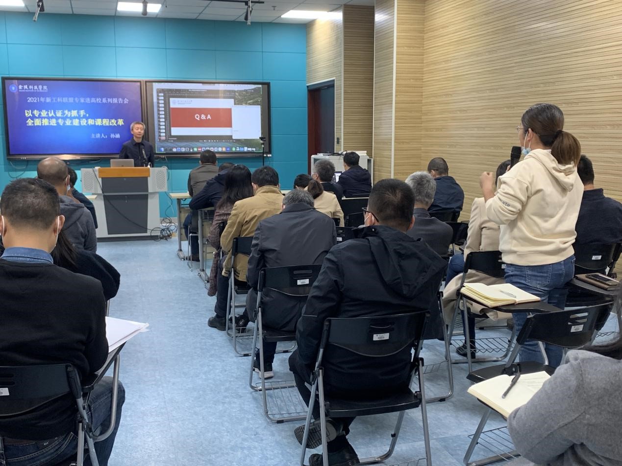 本次新工科联盟专家进高校BB贝博艾弗森原官方网站站报告会线上线下共有来自BB贝博艾弗森原官方网站、北京化工大学、南京航空航天大学、辽宁石油化工大学、苏州大学、深圳大学、温州大学、淮北师范大学、北京城市学院、南阳理工学院、重庆财经学院、集宁师范学院、平顶山学院、武昌理工学院、浙江经济职业技术学院等高校以及北京奇观技术有限责任公司、重庆安尼森智能科技有限公司等企业界共计近百位代表参会,在孙涵教授的主题报告之后,还进行了气氛热烈的现场交流,参会者积极提问,孙涵教授一一作答,报告会让参会者从毕业要求指标点的分解、课程目标的设计与达成、毕业要求的内涵与课程支撑等方面都深受启发、获益匪浅。
