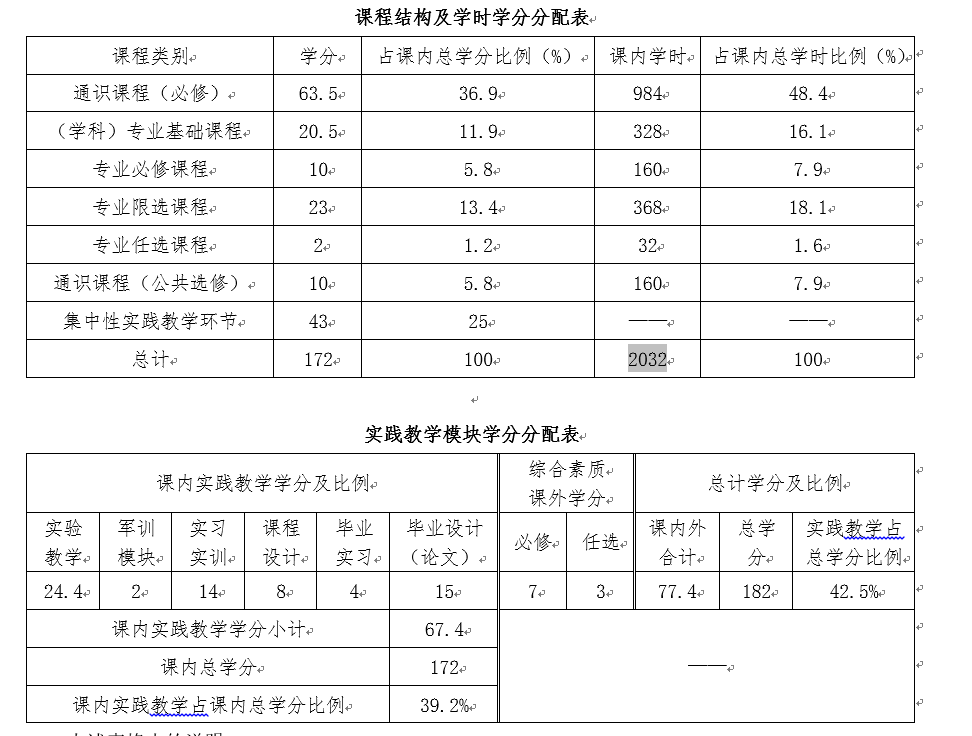 4.若专业限选课中设方向模块的专业,按第一个方向的学分、学时数统计。