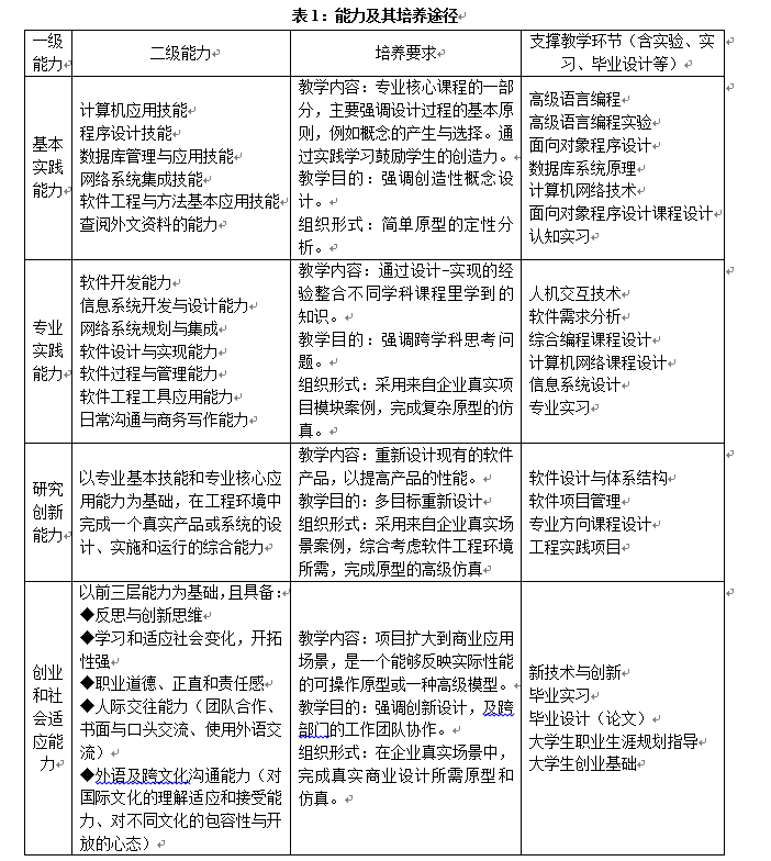 1.具有扎实的数理、专业基础理论知识和专业技能(基础知识),能在软件与信息技术服务业相关领域成功开展与专业相关工作;(职业能力)