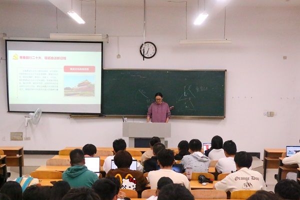 此次宣讲活动,宣讲人主要从“传承雨花英烈精神、缅怀革命先烈”“青春践行二十大、砥砺奋进新征程”“发扬民族精神、厚植爱国主义”三大主题展开阐述。宣讲过程中,宣讲人通过展示雨花英烈的事迹,让在座同学了解他们为了国家和人民的解放事业所做出的巨大贡献,并指出,他们以坚定的信仰、顽强的意志和无私的奉献精神,为当代青年树立了崇高的榜样。宣讲人强调,习近平总书记提出全面贯彻党的二十大精神,需要每一位青年的积极践行,要弘扬中华民族精神,将自己的人生同民族命运紧密联系,永远朝气蓬勃迈向未来,为在座同学明确了时代的使命。