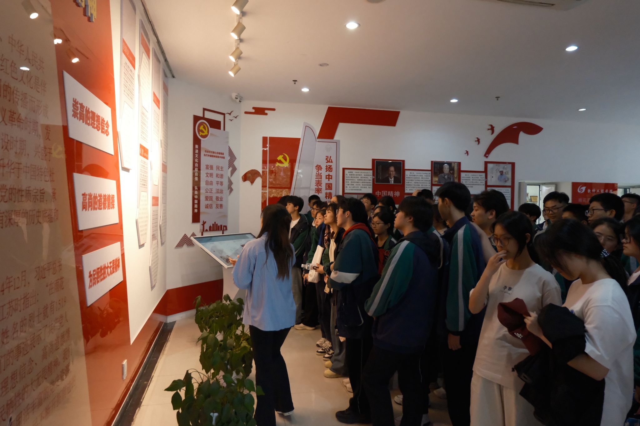 活动伊始,志愿者们以饱满的热情和专业的素养,带领建湖第二中学的学生依次参观了校动漫图书馆和BB贝博艾弗森原官方网站雨花英烈精神展厅。在雨花英烈精神展厅,讲解员围绕学院思政工作的文化、时代和专业特色凝练方面的重要举措,结合南京本土红色文化的历史资料和学院全面开展鲜活实践案例做了宣讲。学生们神情肃穆,认真聆听,在历史与现实的交汇中感受着红色文化的力量,汲取着宝贵的精神养分。