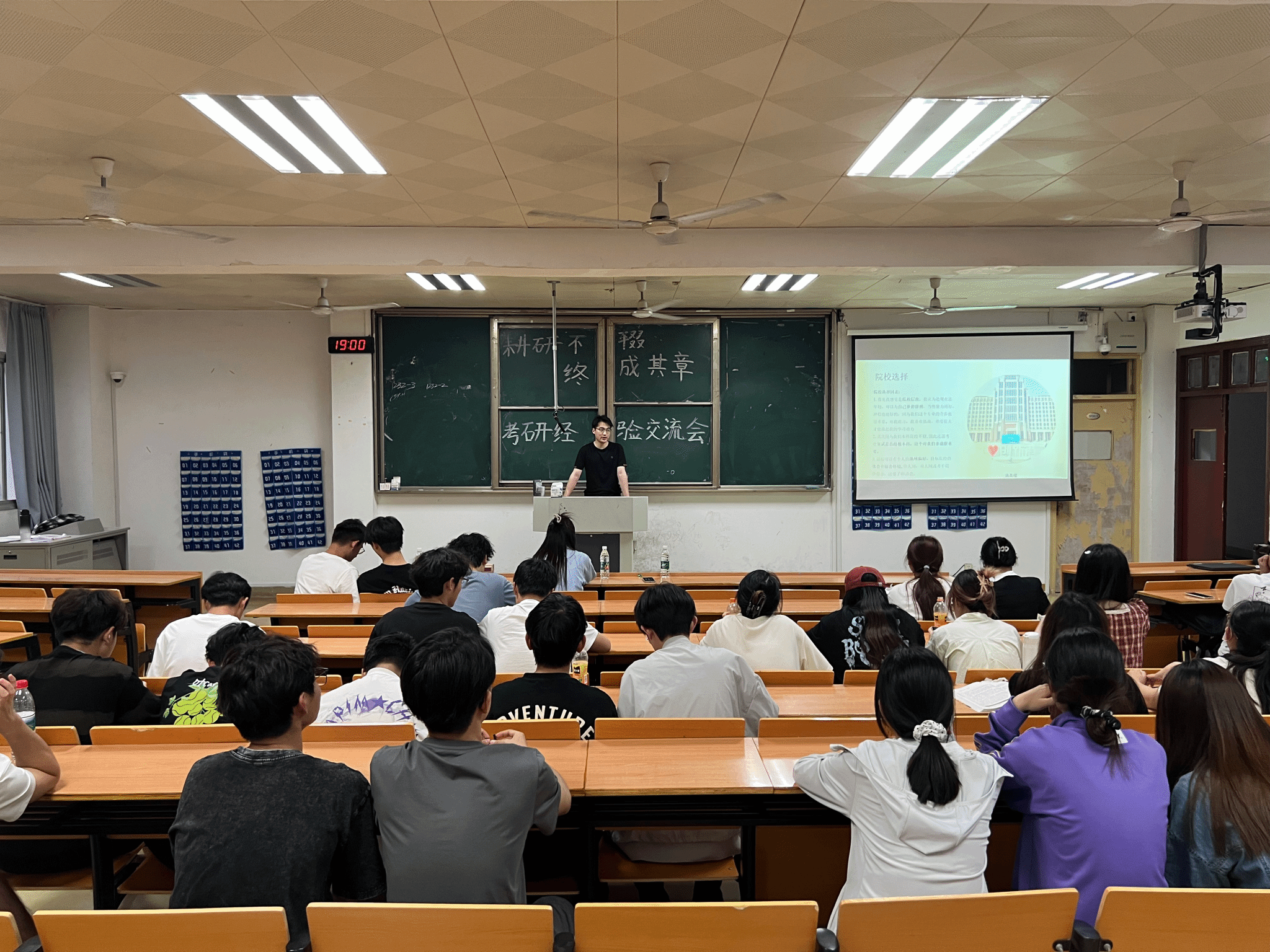 分享环节中,四位学长学姐分别从不同维度展开干货输出:周敏聚焦择校策略,建议结合个人兴趣、职业规划及专业基础评估目标院校,重点通过研招网、院校官网及直系学长学姐渠道获取招生简章、复试线、报录比等关键信息,强调“跨考需提前比对专业课难度与参考书目”;白继闯分享复习方法论,建议按“数学重刷题、英语重真题、专业课重框架”的逻辑分配时间,推荐《张宇30讲》等资料,并对比自学与报班的适用场景——公共课可自学搭配网课,专业课信息闭塞时建议报班;王雨露关注心态调节,针对焦虑、瓶颈期等问题,分享每周预留放松时间、设立目标奖励机制等技巧,并可以在不同时间进行相应的复习,以提高复习效率;杜尚波详解复试要点,拆解“笔试+面试”流程,强调导师对专业问题逻辑表达、科研经历及解决问题思路的关注,建议大家可以在学有余力的情况下多参加竞赛,提高自己的经验和水平。互动环节中,同学们就“如何正确获取相关信息”、“如何制定长期计划”等问题踊跃提问,学长学姐结合实例逐一解答。