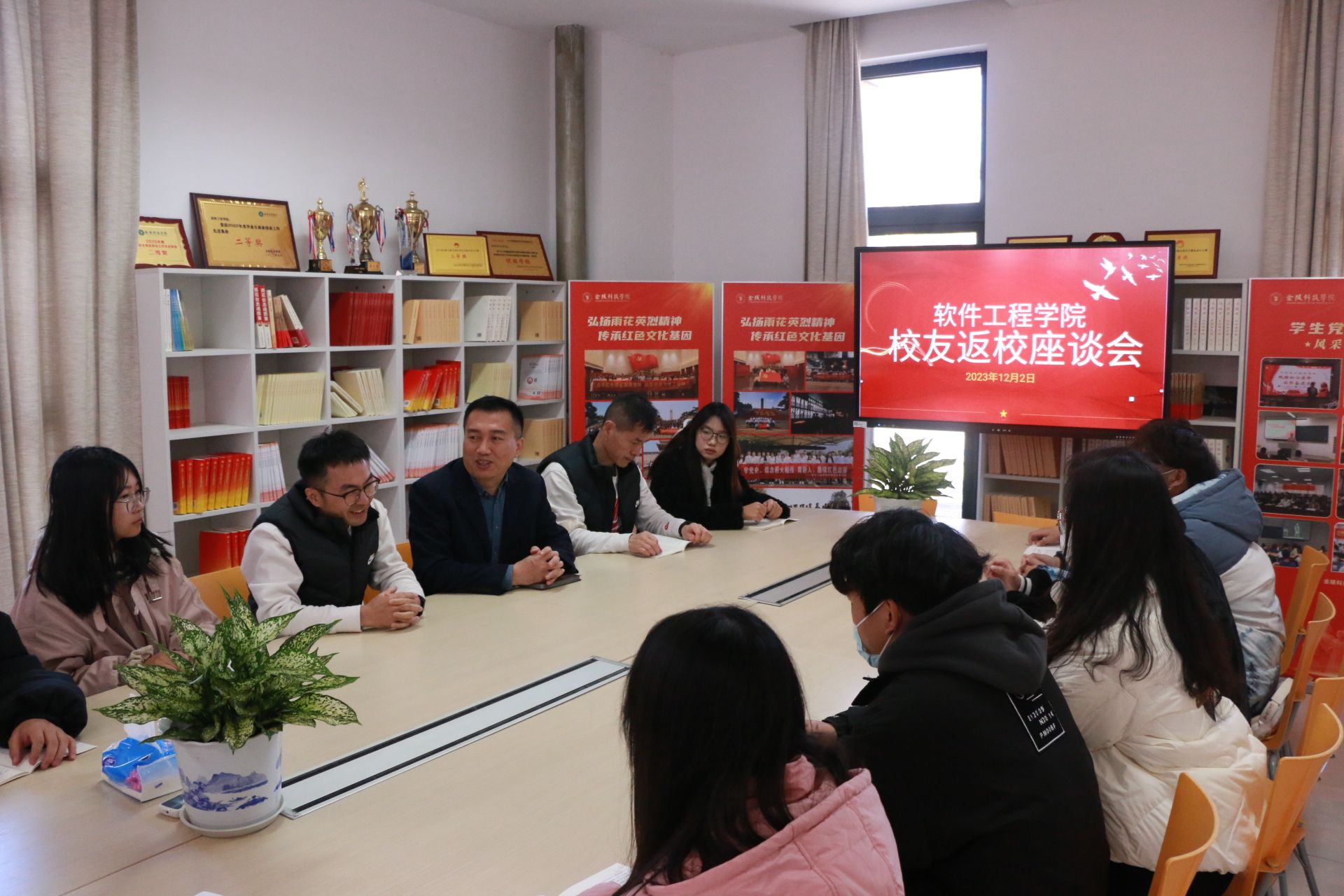12月2日上午,BB贝博艾弗森原官方网站在科技楼1-121辅导员思政工作室举行了校友返校座谈会,江苏恒为信息科技有限公司CTO崔春生和南京丰生康软件科技有限责任公司软件开发工程师朱经伟受邀参加,软件学院党委书记徐志国、学工办主任张理航、StackFarm创新实验室创新团队成员及部分学生代表参加了本次座谈会。