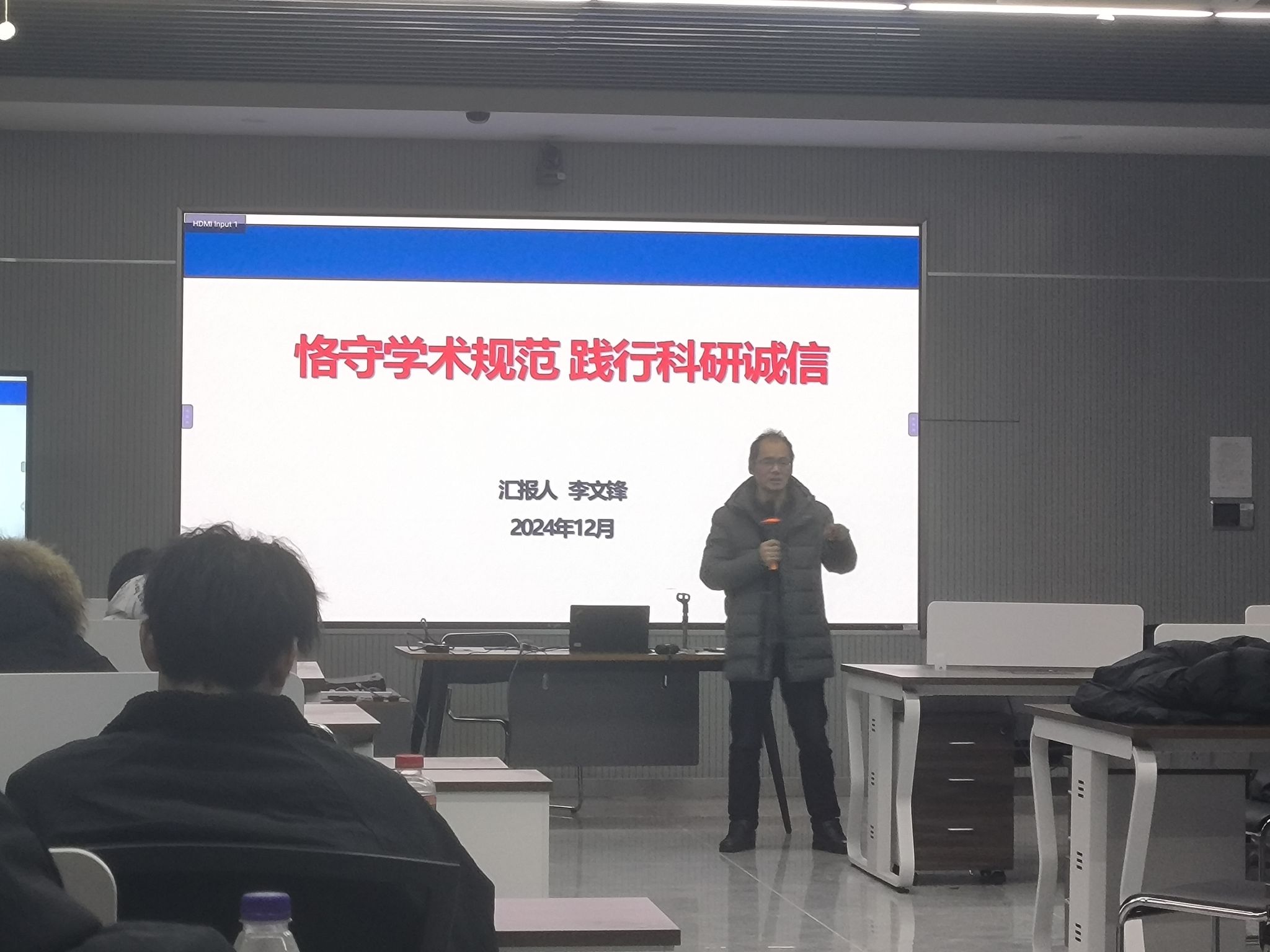 ‌12月27日,电子信息专业硕士学位点在科技楼2-310室举办了“学术规范与科研诚信教育”专题报告会。此次报告会旨在深化硕士研究生的科研诚信理念,进一步促进学术研究的规范化进程与可持续发展。